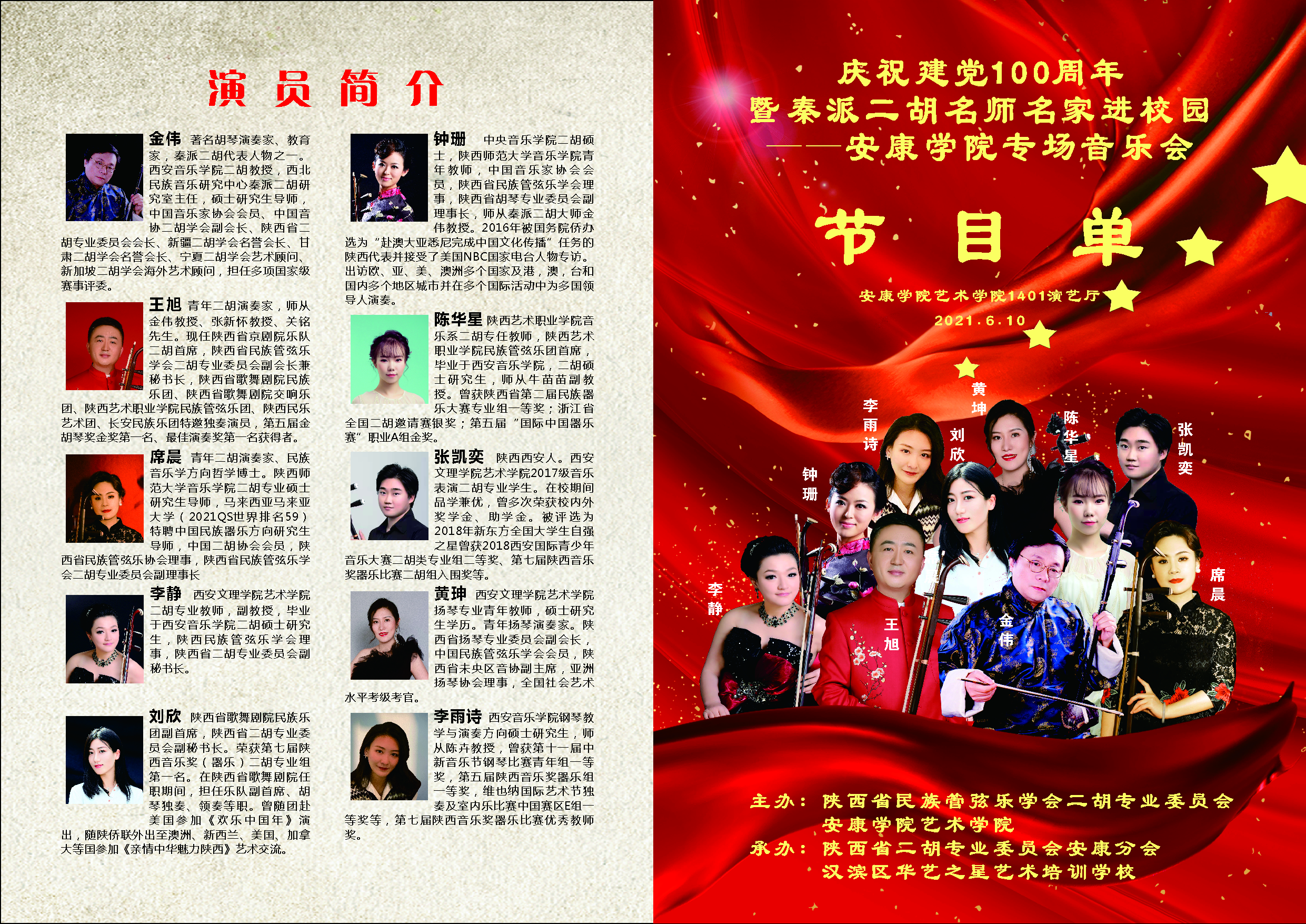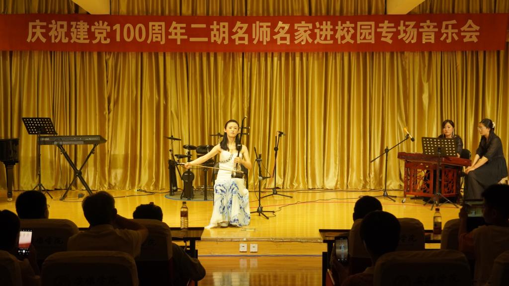 610日晚,由陕西民族管弦乐学会二胡专业委员会和k1体育联合主办的“庆祝中国共产党成立100周年暨秦派二胡名师名家进校园k1体育官方网站专场音乐会”在公司江北校区1401演艺厅成功举办,公司师生200余人聆听了音乐会。