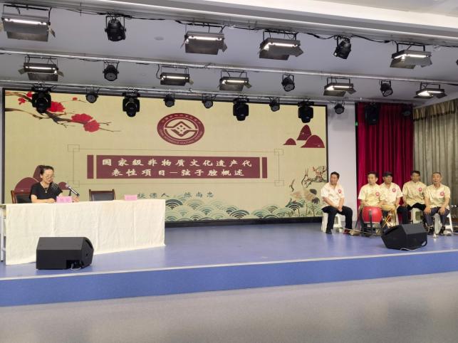 平利弦子腔乐队组成包括独具特色的弦胡、琵琶、三弦、二胡、竹笛、锣鼓等。在陈馆长的讲解过程中,由国家级非遗弦子腔传承人领衔的乐队在舞台为大家展示了优美的音乐片段,现场响起阵阵热烈的掌声。在讲座中,平利县文化馆向公司师生赠送了《平利弦子腔》和《平利弦子腔音乐选集》两本书各若干本,珍贵的礼物引起了大家阵阵惊喜。随后陈馆长结合平利弦子腔经典作品《审女婿》,边讲边唱,为大家生动形象地展现了弦子腔的独特艺术魅力。最后陈馆长感谢公司对弦子腔传承工作的大力支持,并期待与公司再次深度合作,谱写平利弦子腔的传承和发展新篇章。