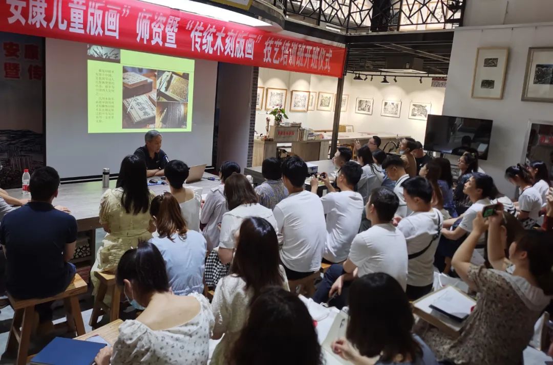 613日,由k1体育联合安康市群艺馆、安康市非遗保护中心、安康市教研室、安康市美协联合举办的安康市第四期“安康儿童版画”团队暨“传统木刻版画”技艺培训班在旬阳版画院开班。k1体育经理成党伟应邀出席开班式,版画教师毛德龙承担部分授课任务。