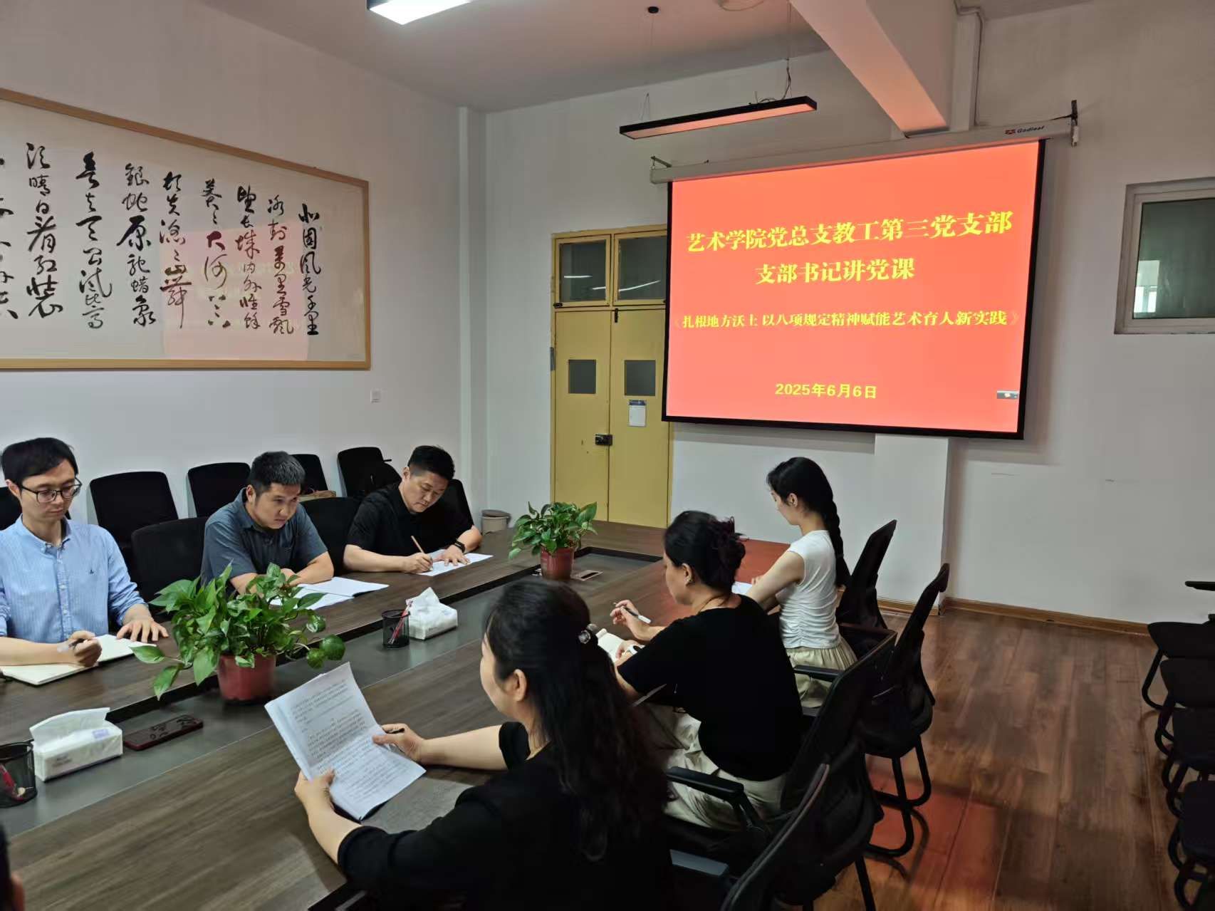 此次党课进一步为音乐系党员教师指明了方向,激发了大家的责任感和使命感。党员们纷纷表示,将以此次党课为契机,深刻领会八项规定精神,立足岗位,扎根地方文化,努力为员工创造更优质的艺术教育环境,为培养德艺双馨的艺术人才贡献力量。未来,教工第三党支部也将持续深入贯彻八项规定精神,探索更多创新举措,推动艺术育人工作不断取得新成效 ,为地方文化艺术的繁荣发展注入新活力。