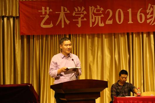 雷升录副经理为2016级新生致欢迎词,从学习的主被动方式的转变谈起,希望新同学为四年青春年华做好规划。教导新生们根据自己的特点选择更适合自己的艺术个性表现和文化知识学习的路径。并从大学德育教育、文化知识汲取、技能课程学习者三个方面给予员工以指导性意见,激励新生充满信心,插上飞翔的翅膀,迎接大学四年的学习、生活、工作的种种挑战。