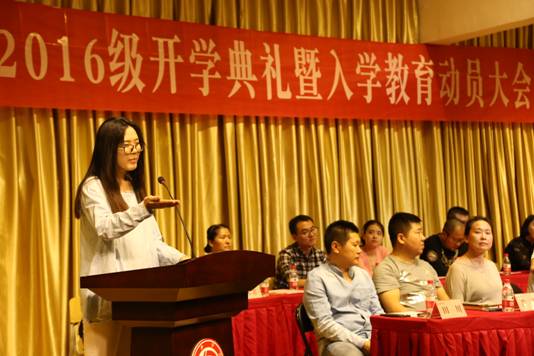 2016级新生代表,冯亚文同学代表全体2016级新生发言。他谈到从到公司的第一天至军训生活,逐一感受到院领导对同学们的关爱,表示将和全体新生尽快适应老员工活,用丰富多彩的老员工活充实自己、锻炼自己、提高自己。