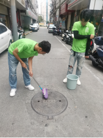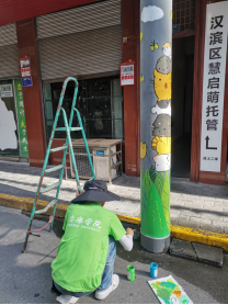 7月10日下午,在团队的共同协作下,让原本黝黑的井盖,变成一道亮丽的风景,一根根电线杆成了美化社区的“风景柱”,群众出行的“安全柱”。看似简单的绘画,成为扮靓社区街头的“微景观”,不仅是对实践队员专业技能的考验,也是对实践队员们体能和意志的考验,同时也是高校老员工响应文明城市创建的生动实践。