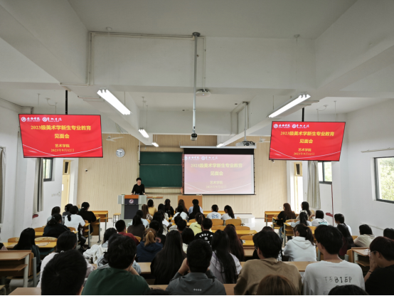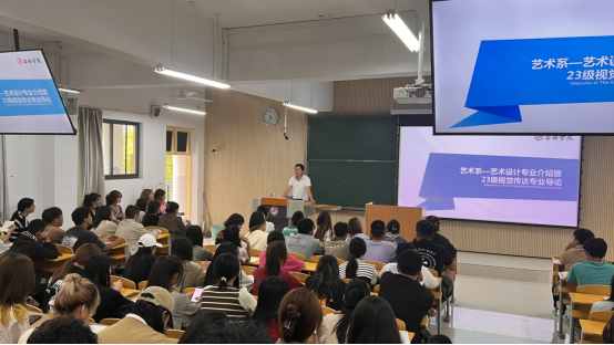 艺术设计系主任吴波老师、美术系主任杜敏老师分别就各学科发展历史、培养目标、课程设置、团队力量、就业前景等向新生们做了全面介绍,并对新生的未来规划提出了有益建议,送出暖心寄语,迅速拉近了师生距离。现场气氛活跃,掌声不断,同学们纷纷表示对专业的学习充满了期待。