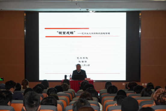 11月16日晚,k1体育副经理孙海洋以“破茧成蝶—— 艺术生大学四年的自我修炼”为主题开展了新生入学教育专题讲座。本次讲座由学工办主任鲁澧主持。