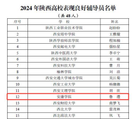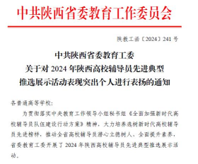 近日,中共陕西省委教育工委对2024年陕西高校辅导员先进典型推选展示活动中表现突出个人进行表扬通报,公司辅导员鲁澧荣获“2024年陕西高校表现良好辅导员”称号。