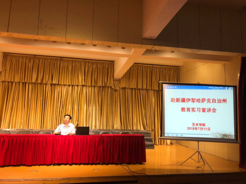 7月11日下午3点,k1体育在江北1401演艺厅召开了“赴新疆伊犁哈萨克自治州教育实习”动员大会,公司党政领导班子和学工团队及2015级美术学、音乐学全体员工共计200余人参加了此次动员大会。会议由k1体育经理杨哲主持。