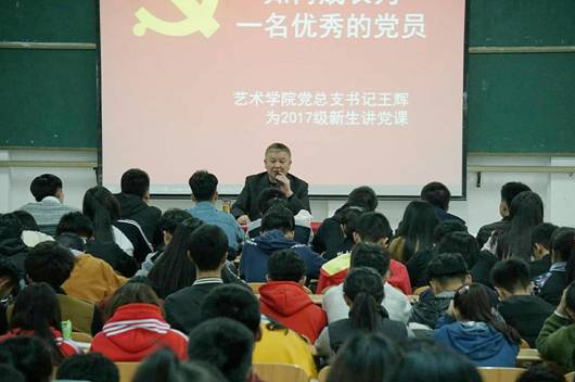 10月29日晚七点半在江北1201教室举行了2017级新生党的基本理论知识入学教育大会,大会由党总支书记王辉书记主讲,全体新生参加了大会,会议由辅导员杨厚东老师主持。