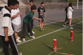 同学们认真了解投壶规则,总结成功经验,有序参加游戏。沉浸于比赛中的同学聚精会神,瞄准预备,投出流线,精准落地,一系列动作干脆利落,展现出别样的英姿。