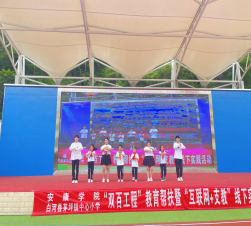 上午9时,驱车抵达茅坪镇中心小学。在参观完茅坪镇中心小学活动室、社团教室后,“双百工程”教育帮扶暨“互联网+支教”线下实践活动拉开帷幕。筑梦支教队成员王喜悦、周维佳、郭雅欣带来青春洋溢的开场舞《一起向未来》,瞬间点燃现场气氛;支莎莎、李湘、梁心锐、李国庆带来歌舞《左手右手》“当困难来临的时候,请你举起你的左手,左手代表着方向,他不会向困难低头;当遇到挫折的时候,请你举起你的右手,右手代表着希望,他不会为挫折发愁。”通俗易懂的歌曲中蕴含着积极向上的人生哲理;梁心锐、马世浩、李国庆、王喜悦、郭雅欣、周维佳、陈登飞奏唱的歌曲《万疆》《不忘初心》引起全场大合唱,孩子们带着灿烂的笑容与支教队成员们积极互动,感受音乐的魅力。