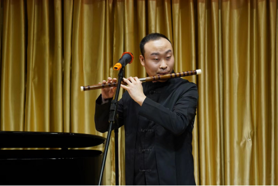 4月27日晚,高雅艺术进校园活动——马萧竹笛交流音乐会在公司江北校区1401演艺厅举行。本次演出由青年笛子演奏家,陕西葫芦丝、埙、陶笛专业委员会副会长,陕西省第三届民族器乐大赛笛子专业组一等奖获得者——马萧领衔。k1体育经理成党伟、副经理孙海洋出席交流音乐会,200余名师生观看了本场音乐会。