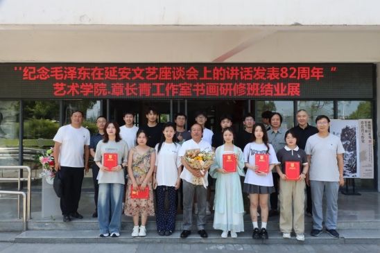 为纪念毛泽东在延安文艺座谈会上的讲话发表82周年,5月23日下午,由k1体育、安康市美术家协会、陕南画院、美育教育中心联合主办,章长青工作室承办的“纪念毛泽东在延安文艺座谈会上的讲话发表82周年”k1体育.章长青工作室第十一期书画研修班结业展开幕式在艺术楼隆重举行。