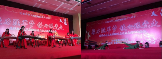 晚上,部分党员教师和员工受邀参加了武警安康支队“聚力强军梦 铁心跟党走”迎国庆主题文艺晚会。晚会在热烈而欢快的气氛中拉开帷幕,李磊老师的歌伴舞《红旗颂》、杜恩波老师的独唱《天地在我心》、肖宁老师与员工的筝合奏《秦之声》以及员工的双人舞《同行》4个节目,为观众带来了一场精彩的视听盛宴。广大官兵与青年学子以优美的歌声、曼妙的舞姿,演绎了军爱民、民拥军的深情厚谊,充分体现了军地携手共建、军民团结一家亲的真挚友情。