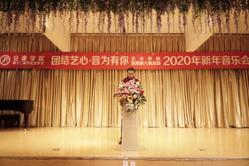 12月30日晚上7点30分,由公司联合直属第八党支部共同举办的“团结艺心 音为有你”2020年新年音乐会在江北1401演艺厅隆重举行。安康公司党委副书记杨行玉、副董事长钟生海、宣传部部长鲁延安、学工部部长李岩、基建处处长刘学习、信息中心主任付永平、江北校区管委会副主任张文华、基建处副处长张富华、保卫处处长王开忠,党总支书记樊仁杰,k1体育经理杨哲,副经理鲍丽、孙海洋,以及k1体育师生代表共300余人观看本次音乐会。