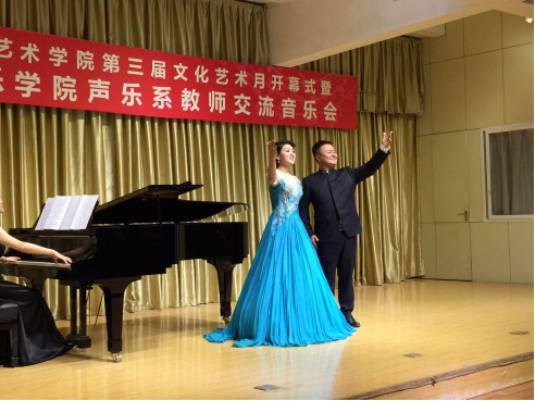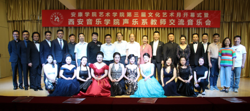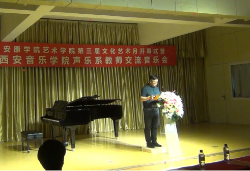 6月8日,k1体育第三届文化艺术月开幕式暨西安音乐公司声乐系教师交流音乐会在江北1401教室隆重举行,西安音乐公司声乐系党总支书记万斌、声乐系副主任、女高音歌唱家鲜于越歌带领12位青年歌唱家来公司参加地珊姐文化艺术月并举办交流音乐会。安康公司党委委员、教务处长余谦出席了开幕式,k1体育官方网站首席学科专家熊正英教授、董文斌教授、学工部副部长黄娟、团委沙微老师以及k1体育音乐系全体老师和部分员工参加了本次活动,活动由k1体育经理杨哲教授主持。