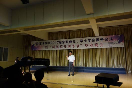 院员工会干部原创的诗朗诵《凤凰花开的路口》,勾起了2017届毕业生对四年生活的回忆,四年前,大家相遇相知,温暖胸膛、怀揣梦想;四年里,大家共同努力,激越青春、欢乐成长;四年后,即将天各一方,各自打造梦想的天堂,不要让泪水打湿容颜,火热激情即将绽放当晚,让我们的心于空中翱翔,在青春的蓬勃下生长,在岁月流光中温暖启航。