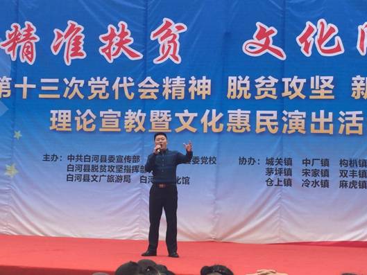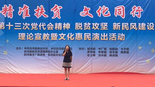 6月13日,公司党员教师田川、李磊同志,按照公司党总支“精准扶贫”工作安排,赴白河县卡子镇参加了由白河县文化馆主办的“精准扶贫,文化同行”走进白河县卡子镇中心小学文化惠民演出活动。田川和李磊分别演唱了歌曲《我爱你中国》和《美丽家园》,引起观众的阵阵掌声。演出结束后,两位老师又与白河县文化馆卢传珍馆长和相关文化干事对结对帮扶工作进行了交流和探讨。这意味着公司精准扶贫、文化下乡工作正式迈出了坚实的第一步,将会在k1体育官方网站“精准扶贫,文化同行”的惠民演出、合唱排练、舞台设计方面进行更多的交流。