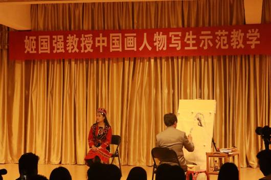 当日下午3时,姬国强教授在k1体育演艺厅为美术学专业师生作了题为“中国画人物创作”的学术报告以及现场示范教学,对公司师生在教学、科研、艺术创作等等方面有着重大的影响。