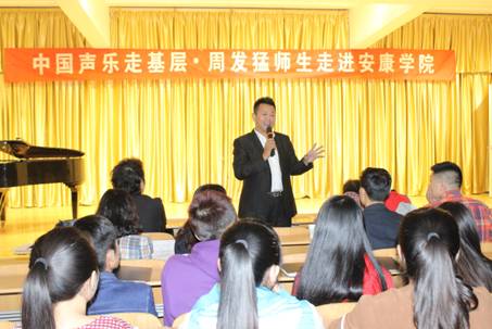 10月10日上午10点,中国海政文工团安康籍著名男高音歌唱家周发猛先生携其员工在我系演艺厅,与我系音乐专业师生进行了声乐演唱交流活动,并结合自己的教学经验,对我系员工进行了现场教学指导。