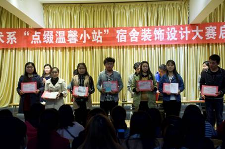 最后,与会的各位领导和老师为受表彰的同学颁发了礼品和证书,台下掌声雷动,场上气氛热烈,同学们精神饱满、信心百倍,艺术系第四届“点缀温馨小站”宿舍装饰设计大赛成功启动。