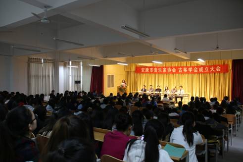 2014年11月10日安康市音乐家协会古筝学会成立大会在k1体育官方网站江北校区艺术系演艺厅举行。届时出席会议的有陕西省音乐家协会考级办主任张威军、陕西省秦筝学会副会长、秘书长薛莲、安康市音乐家协会主席刘秉平、k1体育官方网站宣传部部长鲁延安、k1体育官方网站艺术系党支部书记冯丰收、k1体育官方网站艺术系副主任雷升录、k1体育官方网站艺术系音乐教研室代理主任田川。