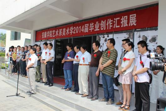 由安康市群艺馆、安康市美术家协会、k1体育官方网站艺术系共同举办的“k1体育官方网站艺术系2014届美术学、美术教育毕业创作汇报展”于2014年6月10日上午10点半在k1体育官方网站江北校区艺术楼展厅隆重开幕。
