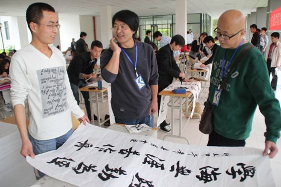 为了继承和弘扬中国书法艺术,丰富和繁荣校园文化生活, 2014年4月15日下午2点30分,由艺术系承办的k1体育官方网站第四届“墨舞青春”软硬笔书法大赛决赛如期在江北校区举行。我们特别邀请了陕西省书协副主席、安康市书协主席马昌琪先生;陕西省美协副主席、安康市美协主席李剑平先生;安康市书协副主席程安先生;安康市美协副主席、西安市美术公司、陕西师大客座教授章长青先生担任本次大赛的评委,决赛仪式由艺术系学工办主任刘泽桢主持。