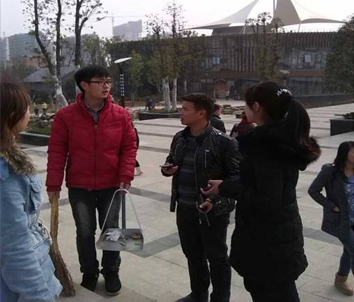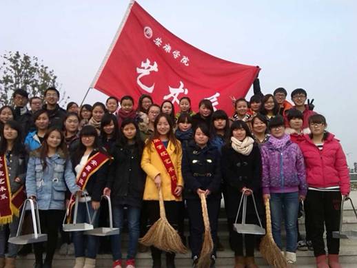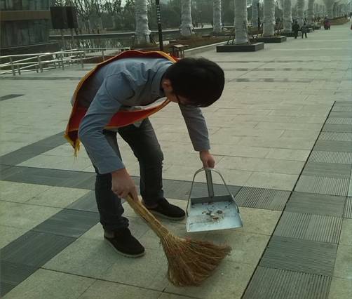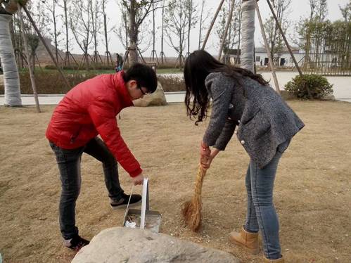 在艺术系系旗的带领、各班班长的组织下,同学们依次对公园的广场、道路和草坪进行清理。在打扫卫生的过程中,没有一位同学叫苦喊累,大家拿着打扫工具对公园的死角进行彻底清理;同学们斗志昂然,无畏凛冽的寒风和刺骨的冬水,徒手去捡拾水中的垃圾,这份热情感染和震撼了在场的每一位游客。
