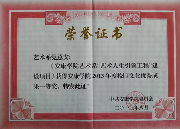 在公司8月20——21日举行的思想政治工作研讨会上,我系的《k1体育官方网站艺术系“艺术人生引领工程”建设项目》获得k1体育官方网站2013年度校园文化优秀成果一等奖。