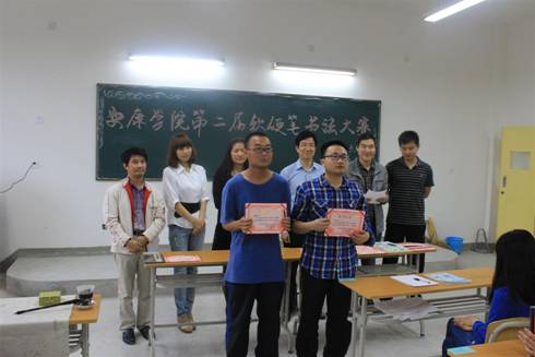 大赛预赛于5月13日下午在江南、江北两个校区同时进行,一百多名同学参赛,经过艺术系书法老师对现场作品的专业评选,最终有31名同学入围决赛。5月17日下午,决赛在江北校区1221教室进行。参加决赛仪式的有艺术系党总支书记冯丰收、学工办主任刘泽桢、辅导员王毅、艺术系团总支书记黄娟。美术学教研室主任孙海洋、美术学老师谢敏和杜敏出席仪式并担任此次决赛评委。