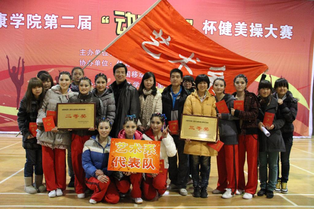 本次健美操本次比赛的有来自各院系13支代表队参赛,比赛分为规定操和自选操两个项目。我系选派了16名选手分两组参赛。比赛中,我系选手以新颖别致的造型,独具特色的亮相,让观众们为之眼前一亮。火红,青春的色彩,微笑,自信的光芒,动作明快奔放,编排精致新颖向大家展示了青春的激情,展现了力与美的结合,展现了艺术系同学的创造力,秀出了艺术系员工的风采。在热烈的氛围中队员们默契配合,以饱满的热情和良好的状态完成了整套操的动作,赢得了观众的阵阵掌声和评委们的一致好评。