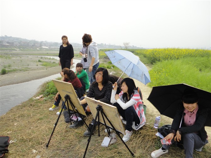 此次画展为以油菜花为主题,他们走遍了公司附近有油菜花的地方。画展形式多样,有的同学画的是速写,有的是水彩、油画、水粉等等。
