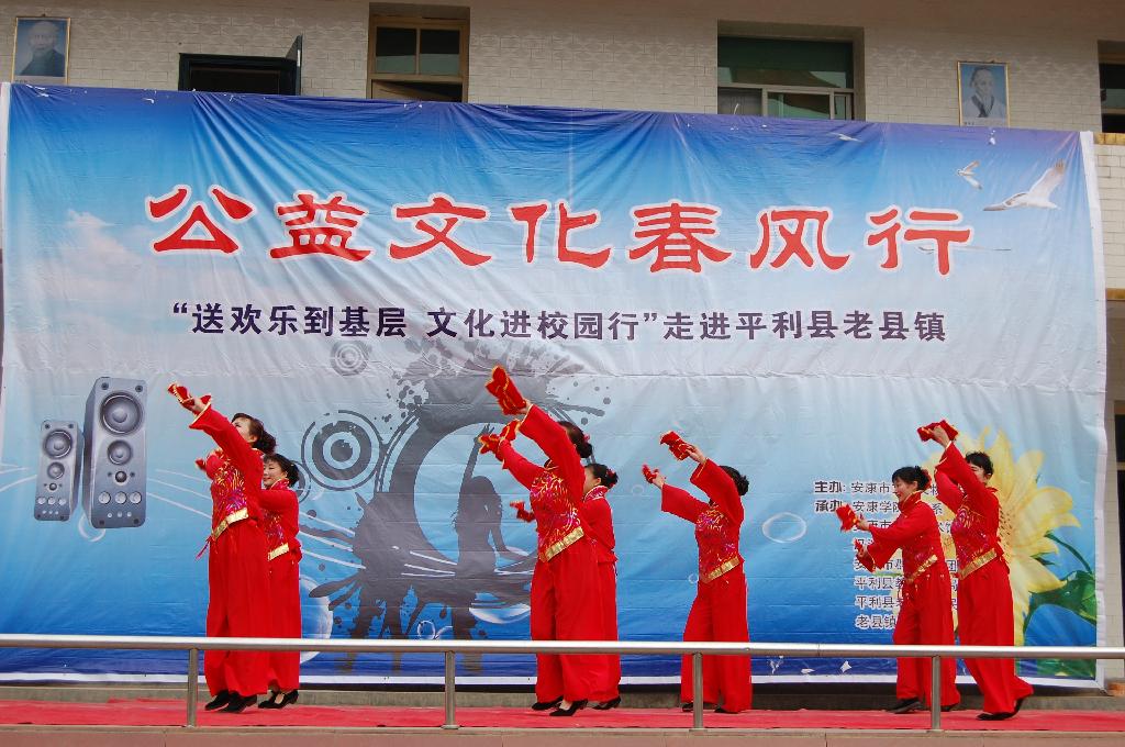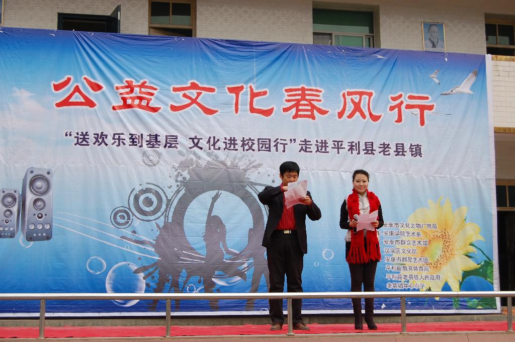 由安康市文化文物广电局主办,k1体育官方网站艺术系、安康市群艺馆、安康市青少年宫等单位承办的我市一年一度的“文化艺术三下乡”活动,于2011年1月14日在平利县老县镇拉开了帷幕,受到当地领导和群众的热烈欢迎。