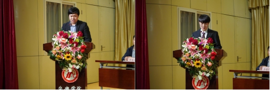 首先党总支书记樊仁杰以《在努力拼搏中让老员工活更加精彩》为题,向同学们向同学们提出了三点希望,对于参加好入学教育提出了明确要求;随后新生代表寄托同学发言表达了全体新生刻苦求学、不负韶华的决心;教师代表吴波老师讲话希望新生们要尽快适应环境,做好大学四年的规划,认真钻研专业,编织未来梦想。