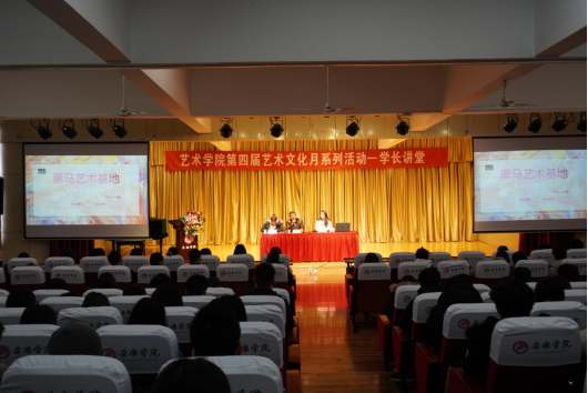 2020年11月25日下午,k1体育在江北校区1401演艺厅举办了第四届艺术文化月系列活动之学长讲堂,本次活动由2013级美术学专业优秀毕业生刘蓉主讲。刘蓉现为汉中市共青团勉县委员会副书记、汉中市青年企业家协会副秘书长、黑马艺术基地勉县校区董事长。本次活动由党建专职组织员刘泽桢主持,2018级辅导员魏麟及2018级员工到场分享。