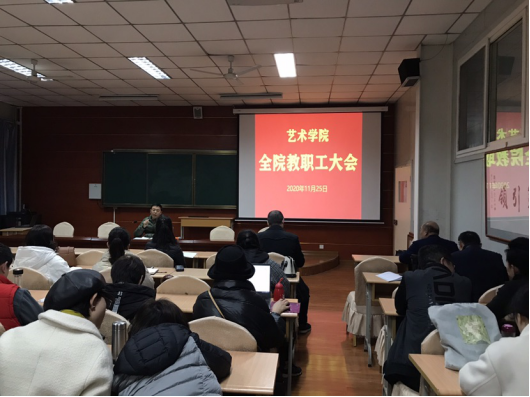 2020年11月25日下午2点30分,k1体育在江南校区1018教室召开全体教职工大会和党员大会。本次大会由党总支书记樊仁杰主持,全体教职工参加。