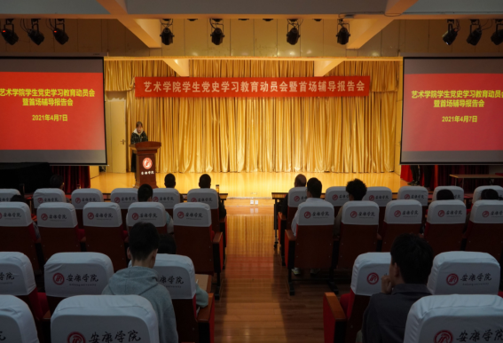 知史爱党、学史奋进。为认真学习贯彻习近平总书记在全国党史学习教育动员大会上的重要讲话精神,推动党史学习教育在青年老员工中的深入开展。4月7日下午,在江北校区1401演艺厅召开了公司员工党史学习教育动员会暨首场辅导报告会。参加会议的有公司党总支书记樊仁杰、副书记李万明、专职组织员刘泽桢、美术系主任杜敏、全体辅导员以及员工党员、发展对象、入党积极分子和各班团支部书记、班长、宿舍长共计100余人。本次大会由员工党支部书记魏麟主持。