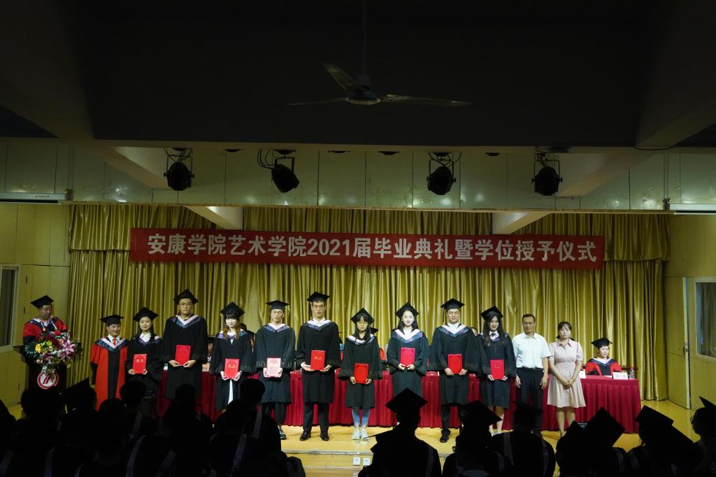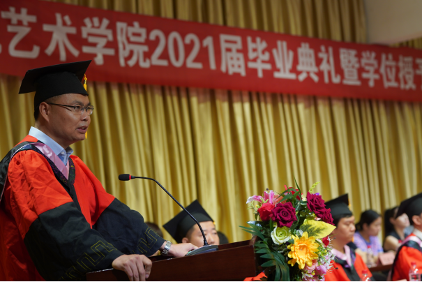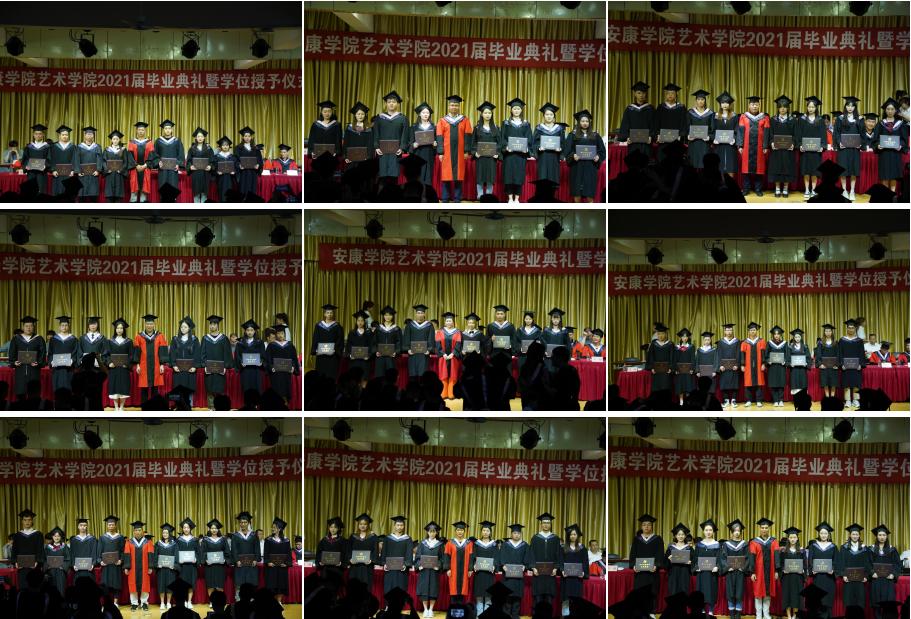 在学位授予仪式上,k1体育学位授予导师分别为2021届音乐学、美术学和视觉传达设计专业的毕业生拨穗、颁发学位证书,并合影留念。