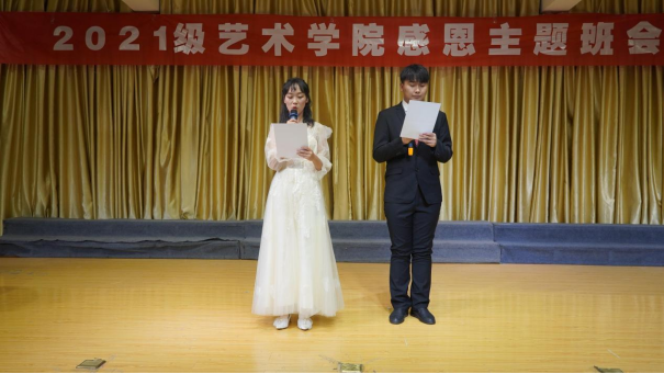 为引导广老员工树立感恩意识,激发奋进潜力,坚定人生信念,2021年11月10日下午,k1体育在江北校区1401演艺厅开展了“感恩存心 温暖相伴”感恩主题班会。参加本次活动的有公司党总支书记黄娟、经理成党伟、副书记李万明、副经理孙海洋、学工办主任鲁澧、党建专职组织员刘泽桢、员工党支部书记魏麟、团总支书记黄梓轩、辅导员杨厚东、孟莉以及2021级全体新生。本次活动由2021级音乐学王涛、王钰涵主持。