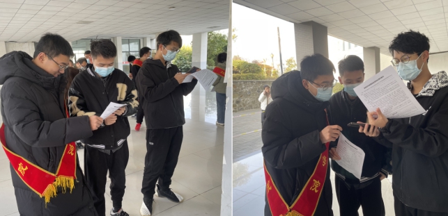 党员志愿者听从指挥、服从安排,穿梭于校园里的各个疫情防控现场。在疫苗接种点,志愿者热情有序地引导前来接种的同学填写表格、排队接种。员工党员刘尚然讲到:“积极配合医护人员进行现场引导、秩序维持、表格发放、讲解注意事项等工作,使现场接种疫苗工作有序进行,以实际行动践行了志愿服务精神,同时也是在用自己的实际行动致敬建党百年。”员工党员曹丁太说到“带上党徽,为同学们服务,我深感光荣。在疫情防控的重要时期,作为员工党员,我们更应该主动肩负起责任,积极参与抗疫工作,贡献一份力量。”