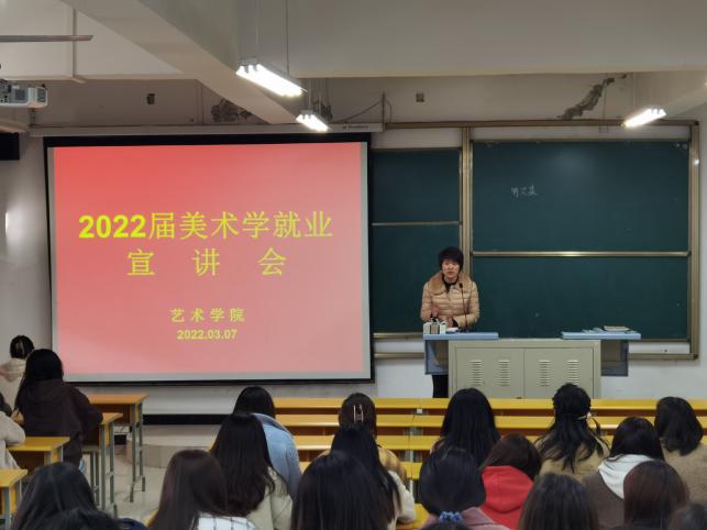 为贯彻落实2022届全国高校毕业生就业创业工作视频会议精神,切实推进就业工作稳步开展,确保2022届毕业生实现更充分和更高质量就业。3月7日,k1体育在江北校区2202教室召开2022届毕业生就业促进月系列活动之就业宣讲会。美术系系主任杜敏、2022届全体美术学毕业生参加了会议。宣讲会由毕业班辅导员魏麟主持。