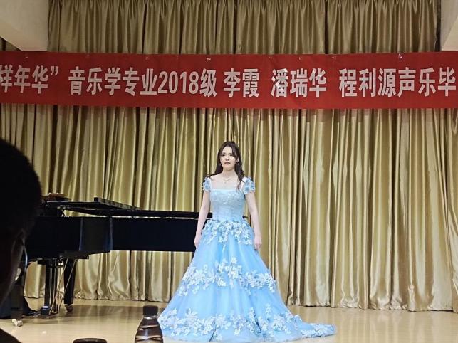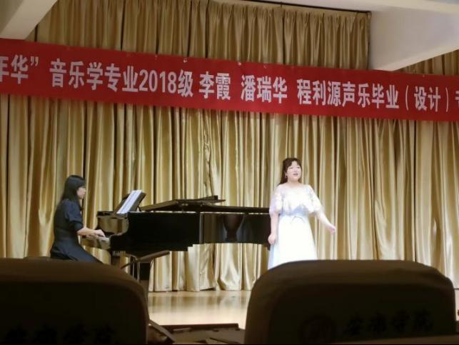 第二场音乐会由李霞、潘瑞华、程利源三位同学演唱,音乐会以“梦絮肆年,花样年华”为主题,三位同学共演唱14首声乐作品。