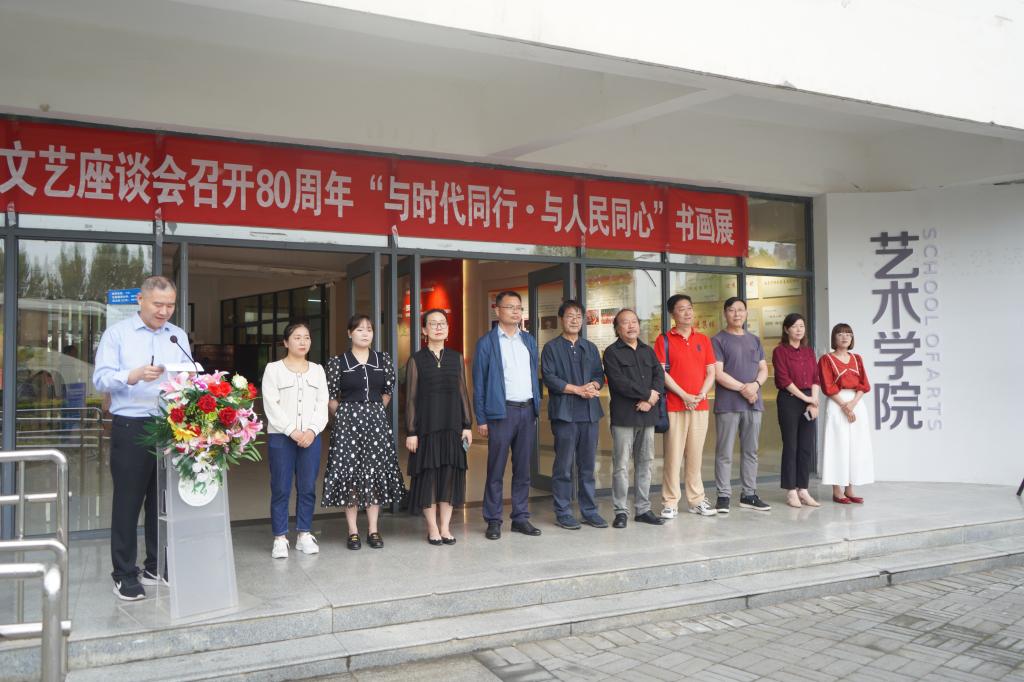 为纪念毛泽东同志《在延安文艺座谈会上的讲话》发表80周年,进一步深入学习贯彻习近平总书记在北京文艺工作座谈会上的重要讲话精神,5月31日,k1体育、陕南画院在江北校区艺术楼举办“与时代同行、与人民同心”——纪念毛泽东同志《在延安文艺座谈会上的讲话》发表80周年暨陕南画院第十期研修班作品展,陕西省美协顾问、安康美协主席李剑平,陕南画院经理章长青,安康美协副主席樊光矢,陕南画院书法院副秘书长梅向东,k1体育经理成党伟,总支书记黄娟,副经理鲍丽、孙海洋出席开幕式。k1体育师生100余人参加了活动。