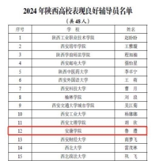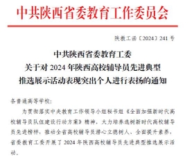 7.8月,中共陕西省委教育工委对2024年陕西高校辅导员先进典型推选展示活动中表现突出个人进行表扬通报,公司辅导员鲁澧荣获“2024年陕西高校表现良好辅导员”称号。