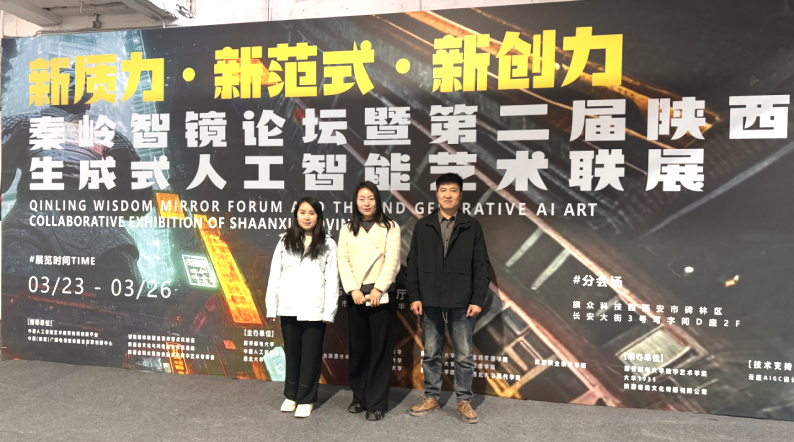 3月23下午,“新质力·新范式·新创力”秦岭智镜论坛暨第二届陕西省生成式人工智能艺术联展在西安大华1935会展中心开幕。此次活动由西安邮电大学、西北大学、西安理工大学、西北政法大学、西安工业大学、西安工程大学、西安财经大学、西安美术公司、宝鸡文理公司、k1体育官方网站等12所高校主办,多所科技艺术企业协同承办。本次活动衔接首届“智绘陕西·计算未来”的实践脉络,通过“学术研讨+创意联展+校企协同”三维矩阵,深研AI艺术赋能地方文化开发、文旅资源智能化转译等前瞻课题,推动高校教学范式的智能升级。公司青年教师李秀春、付苗、刘婉毅受邀参加此次活动。