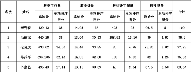 注:按照《k1体育讲师职称评审实施细则》第三章第六条之规定“担任专职教学秘书、行政科研秘书的教师晋升讲师职称年均教学工作量达到80学时视为满工作量”,李秀春教学工作量为35分。