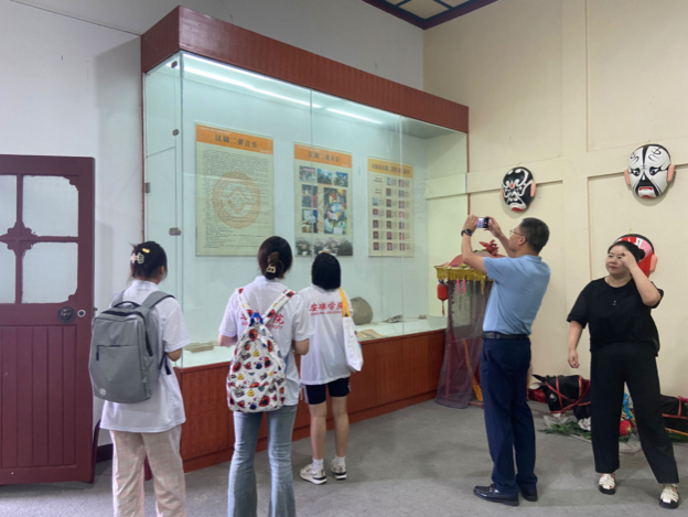在安康非物质文化遗产保护中心的调研中,安康市群艺馆袁静馆员热情地向实践团队介绍安康非遗保护的总体情况,师生们对安康非遗保护有了全面的认知和了解。随后,实践团队走访了国家级非遗传承团队——“汉调二黄”艺术团,拜访了正在排练的汉调二黄艺术家——许士莲,师生们与老艺术家们进行了深入交流并期望共同为汉调二黄的传承发展努力。通过导览和互动展览,我们了解了安康市的历史文化、民族风情和地方特色,增强了我们对当地传统文化的认识和理解。